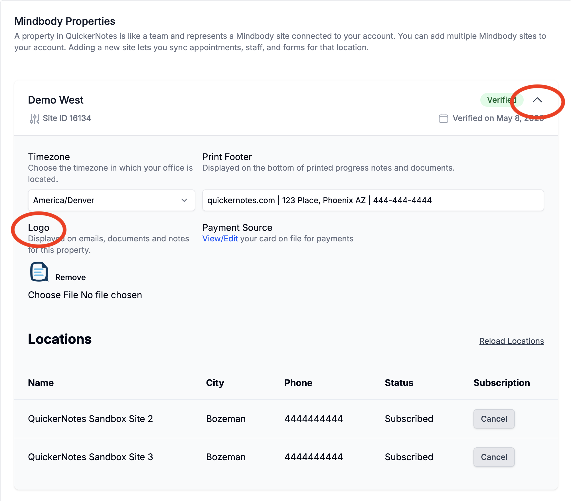 QuickerNotes will automatically try to sync your company logo from Mindbody when you connect your site.