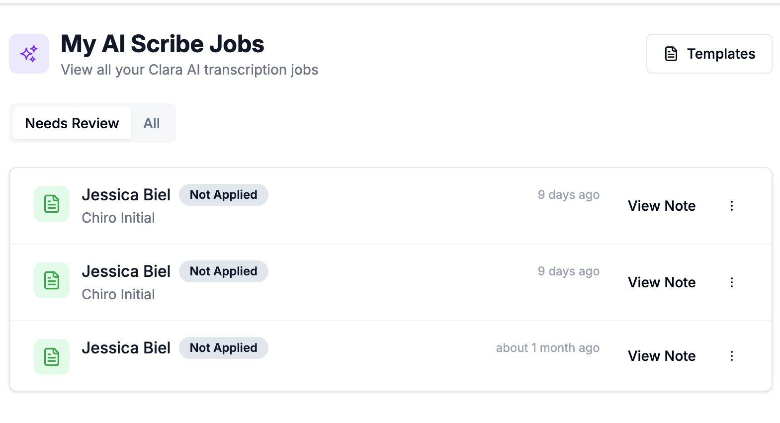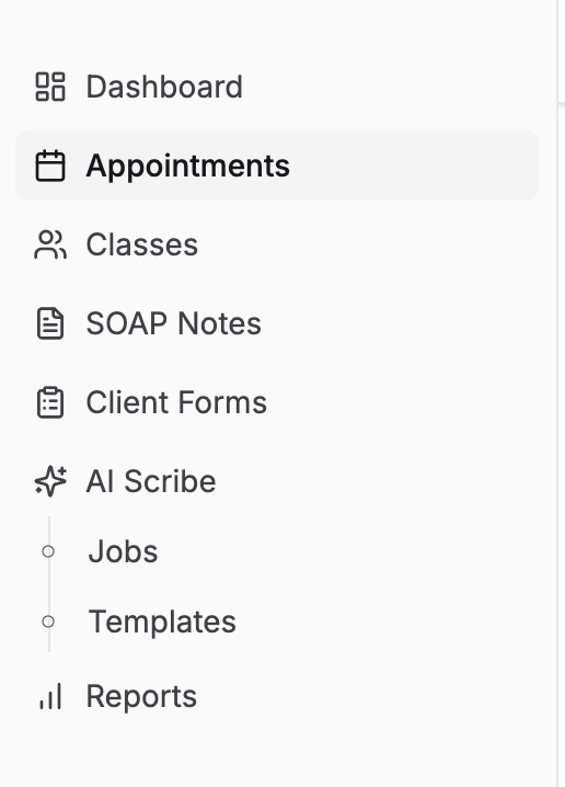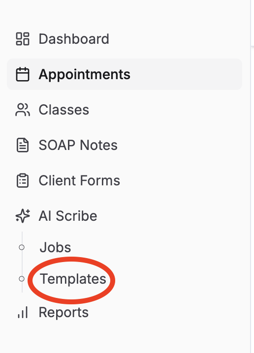 Go to AI Scribe → Jobs or AI Scribe → Templates