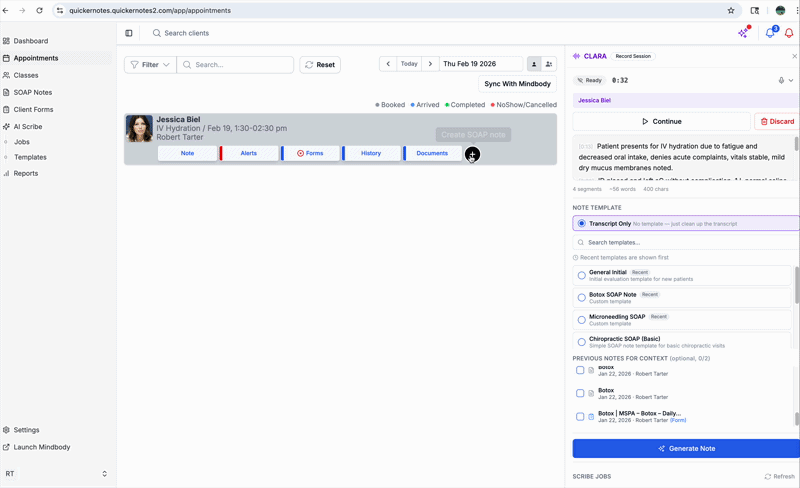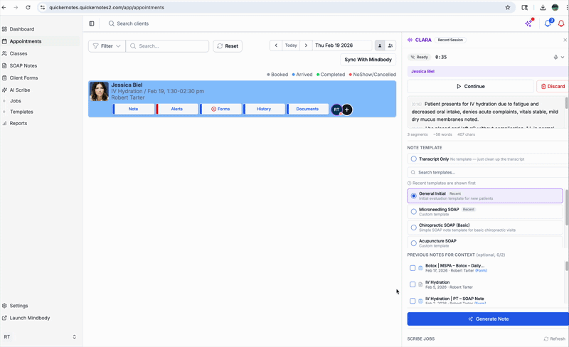 Clara generates draft content only — it does not finalize or sign notes automatically.