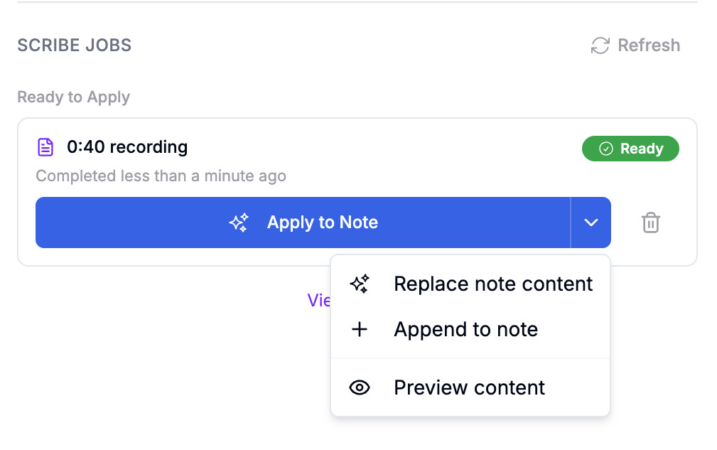 Apply to Note (replace existing draft content)