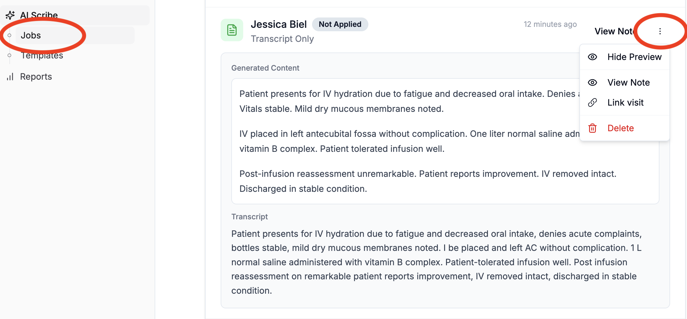 Go to AI Scribe → Jobs.