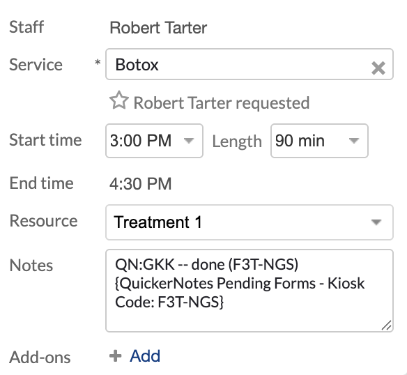QuickerNotes supports short code automations inside Mindbody appointment notes.