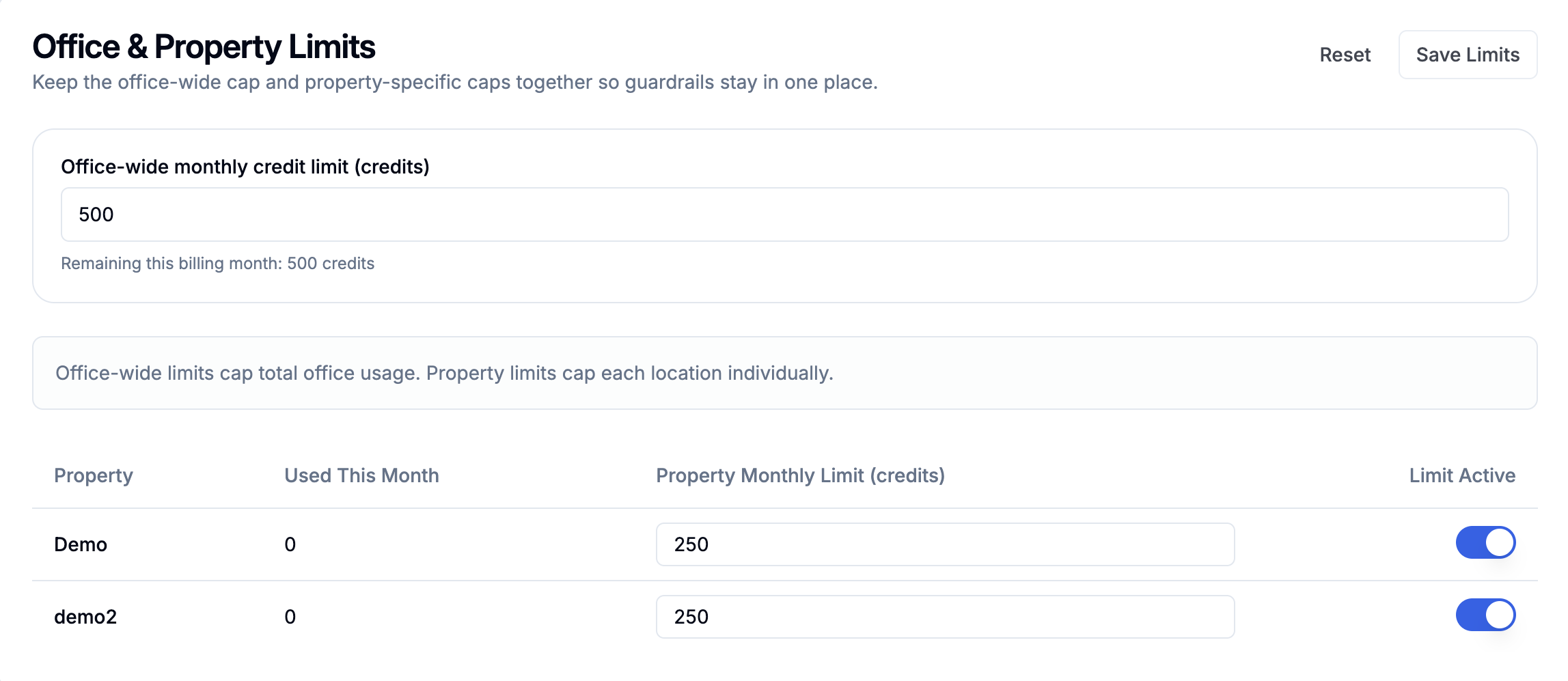 Set Monthly Credit Limits